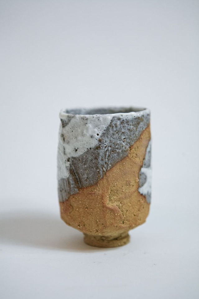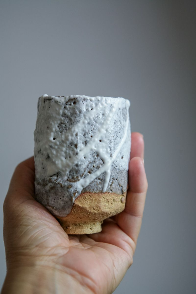 Tasse en grès chamotté sculptée à la main technique japonaise.