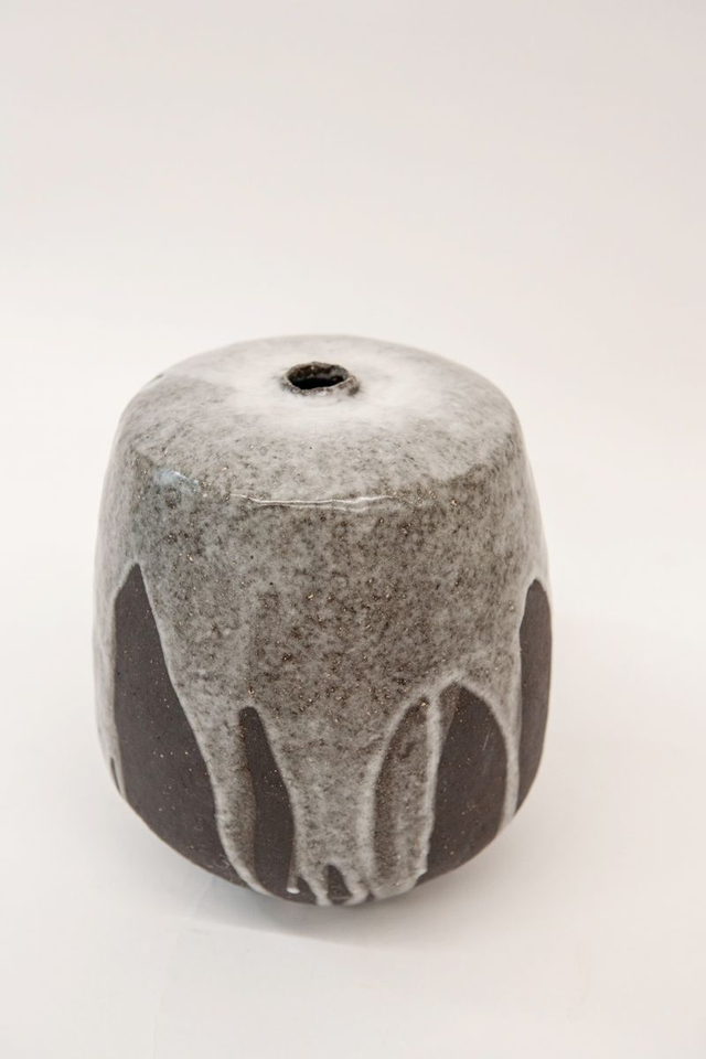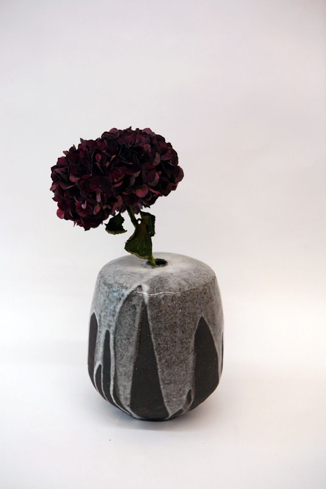 Vase modelé en grès noir chamotté, émail transparent haute température élaboré par mes soins.