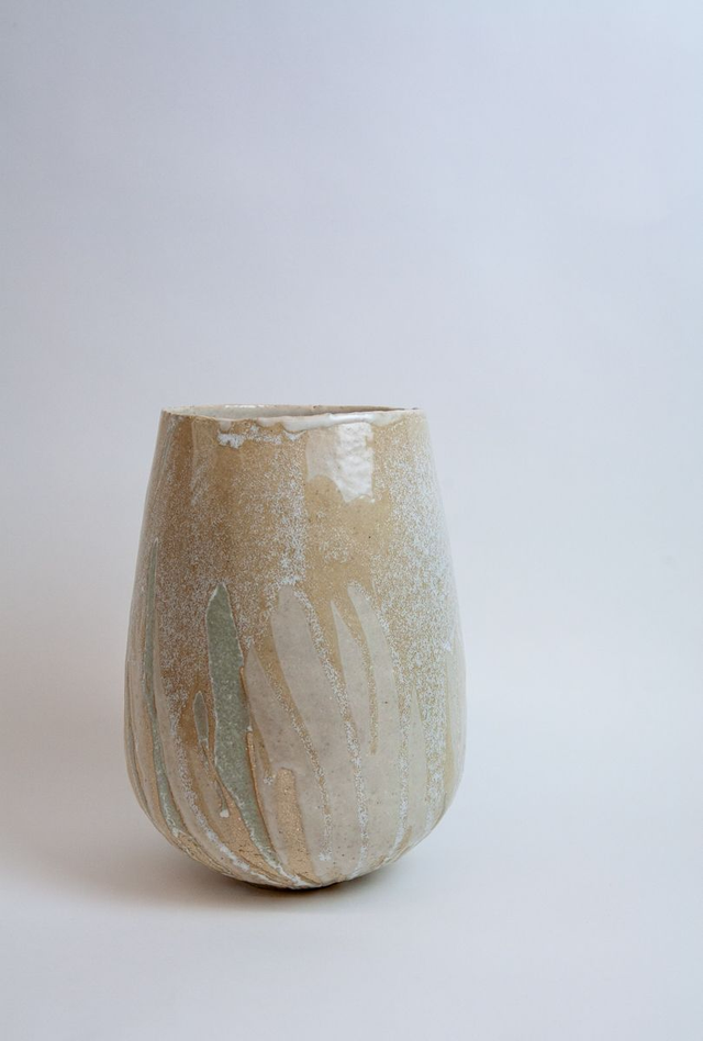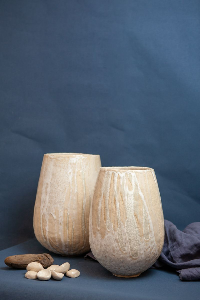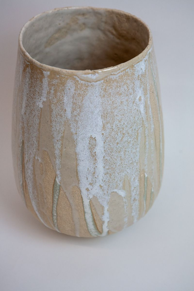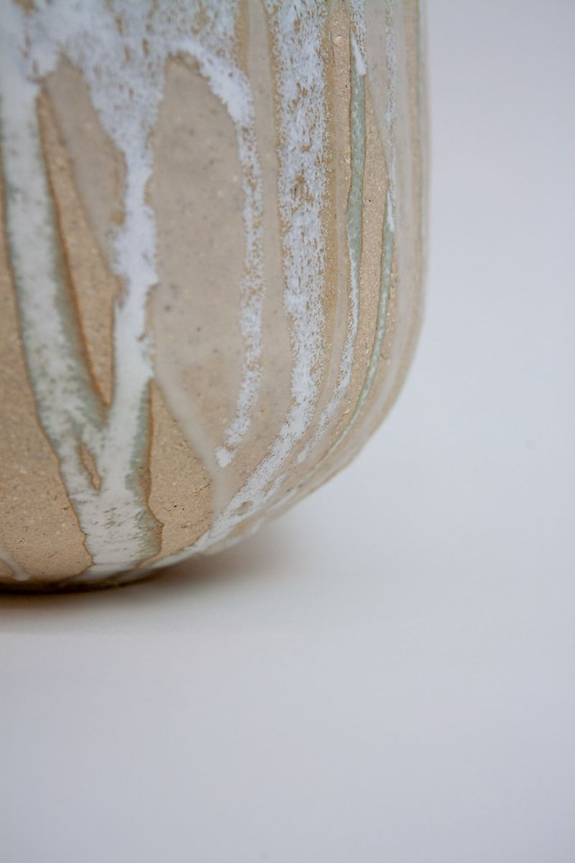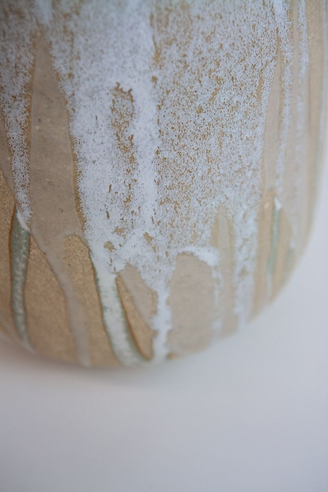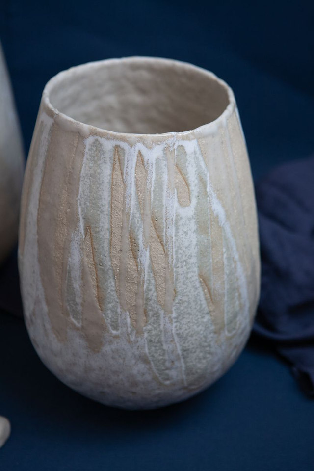 Vase modelé en grès beige chamotté, double émail transparent et mat, haute température, élaboré par mes soins